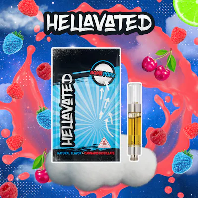 Total Cannabinoids: 90.95% | Delta 9-THC: 87.27% | CBN: 0.42% | CBG: 3.26% | | Alpha-Pinene: 0.40% | Beta-Myrcene: 0.29% | Beta-Caryophyllene: 0.36% | Beta-Pinene: 0.07% | Limonene: 1.28% | Other Terpenes: 0.07% | Total Terpenes: 2.47% -- Take off with a Hellevated Bomb Popz cartridge. You’ll lift off into space in seconds and will not want to come down.