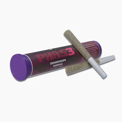 Total Cannabinoids: 23.68% | THCa: 22.73% | Delta 9-THC: 0.48% | CBD: 0.09% | CBDa: 0.05% | CBN: 0.21% | CBG: 0.12% | | Alpha-Bisabolol: 0.02% | Alpha-Humulene: 0.15% | Alpha-Pinene: 0.09% | Beta-Myrcene: 0.08% | Beta-Caryophyllene: 0.45% | Beta-Pinene: 0.09% | Cis-Ocimene: 0.02% | Limonene: 0.52% | Linalool: 0.24% | Terpinolene: 0.02% | Other Terpenes: 0.10% | Total Terpenes: 1.78% -- A mellow, easy smoke that reminds you what cannabis was all about: sharing, laughing and living in the moment. Light up, pass it around and see where the night takes you. Rolled in traditional paper cones and individually sealed for freshness. 0.5g 2-packs are available in several Phase 3 strains.