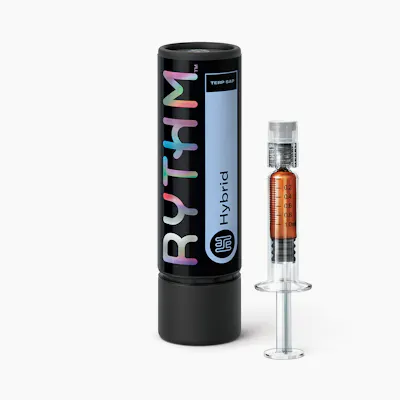 Total Cannabinoids: 80.14% | Delta 9-THC: 79.82% | CBN: 0.32% | | Alpha-Humulene: 0.18% | Alpha-Pinene: 0.04% | Beta-Myrcene: 0.27% | Beta-Caryophyllene: 0.67% | Beta-Pinene: 0.05% | Caryophyllene: 0.67% | Limonene: 0.55% | Linalool: 0.52% | Other Terpenes: 0.12% | Total Terpenes: 2.40% -- RYTHM Hybrid Terp Sap contains highly concentrated, terpene-rich cannabis in an easy-to-use syringe. Strain Description: [orig. Apples & Bananas x White Runtz] is a potent hybrid perfect for experienced consumers, featuring irresistibly sweet flavors of pink Rosé and roses.