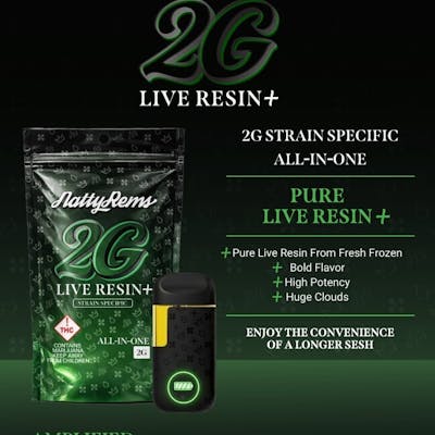 A 2000mg Live Resin Blend of Natty Strains you know and love, crafted from our single-source 100% Homogenous Live Resin and distillate!