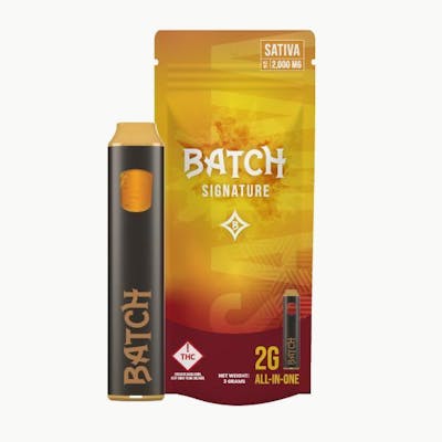 Batch Signature Sativa. Revitalizing and energizing, our Sativa blend is like a caffeine boost (without the jitters). No need to sweat the small stuff. Feel prepared to tackle whatever the day has in store with pride and confidence. Batch is committed to delivering unmatched quality and precision. Sourced from locally grown cannabis, each batch undergoes meticulous distillation to preserve its distinctive terpene profile and potency. Crafted with care in our fully integrated facility, our 100% uncut, NUG RUN, small-batch cannabis cartridges are tailored for the modern cannasseur, offering full-spectrum cannabinoid and terpene profiles that elevate the cannabis experience. Nothing but nature, nice.