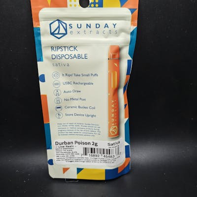 Sunday Extracts - Durban Poison - 2G Live Resin Disposable (TAXES INCLUDED)