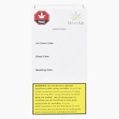 Cakelicious offers two 0.5 g pre-rolls of each: Wedding Cake, Ice Cream Cake and Grape Cake. Enjoy the variant flavours of these sweet, fruity, and creamy strains.