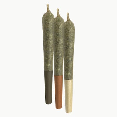 This is a 3x pre-rolls Variety pack containing 3 different strains (one strain per pre-roll). Strains would be colour-coded with filter and accordingly identified on label with potency information.
