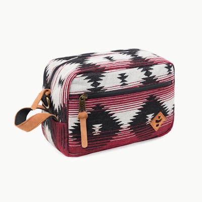 With lots of pockets and a bit of padding, the Stowaway is perfect for holding all of your travel essentials. DETAILS: Smell proof and water resistant Carbon Filter System Rubber-backed exterior Custom protective lining Padded Waterproof zipper Lockable Inner divider External zipper pocket Genuine leather accents Metal hardware Dimensions: 11" x 6” x 5" Volume: 5 L