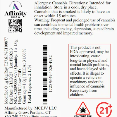 Affinity Modified O Big Ray Pre Roll 27.61 % (H) 1g - 00877
