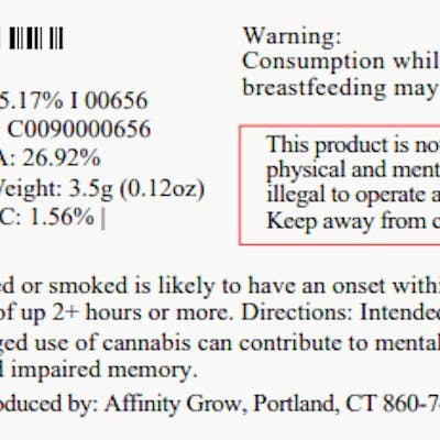 C0090000656 // 3.5g Indica Whole Flower First Cut ----- THCA 26.92% / THC 25.17% Flower Equivalent: 3.5g Expiration Date: 9/15/2026
