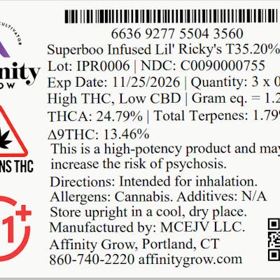 Affinity Superboo Infused Lil' Ricky's Pre Roll Minis 35.2 % (H) .9g 3 Pack - 00755
