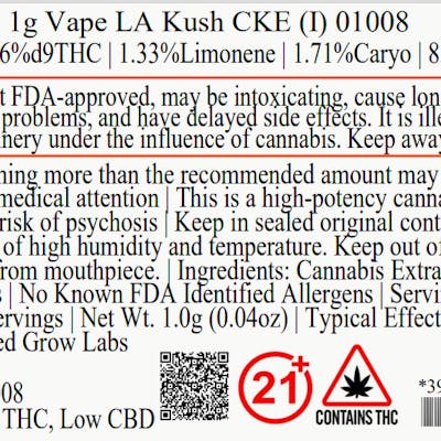 AGL LA Kush CKE Vape 85.36% (I) 1g - 01008