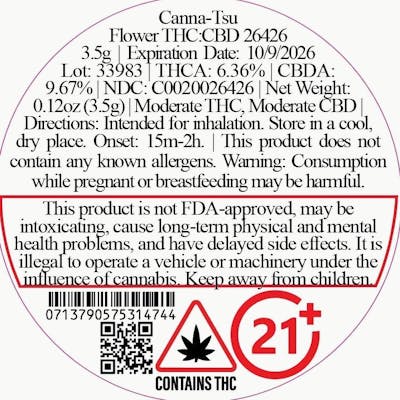 CTPharma Canna-Tsu THC:CBD Whole Flower 5.87 % C9.67% (H) 3.5g - 26426