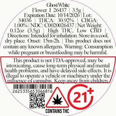 CTPharma Ghost White Whole Flower 27.47% (I) 3.5g - 26437