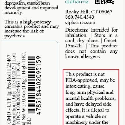 CTPharma Savvy GMO - CTP 1g Pre Roll T19.65% (I) - 25467