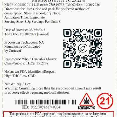 Curaleaf PB MFN Whole Flower 22.12% (S) 28g - 01111