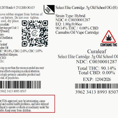 Curaleaf Select Elite Old School OG Vape 90.14 % (H) .5g - 01287