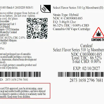 Curaleaf Select Flavor Series Moonburst Vape 86.52 % (H) 1g - 01485