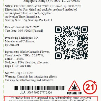 Curaleaf Singapore Sling Whole Flower 24.08% (S) 3.5g - 01002