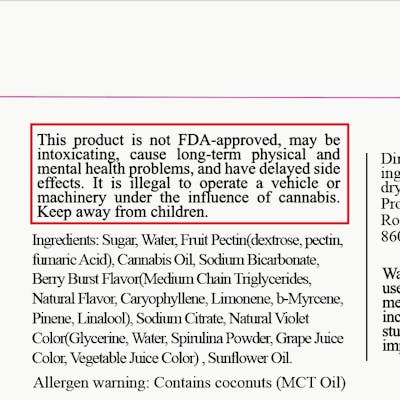 C0020026811 // Sweet Berry Burst Gummies 10pk/20 servings Dominance: Indica ----- 4.86mg THC/Gummy Flower Equivalent: .39g Expiration Date: 2/2/2027 ----- Allergen Warning: Contains Tree Nuts (MCT Oil) See Label for Ingredients