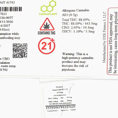 C0040001742 // 500mg Gangsta Grillz Mini Tank Dominance: Indica ----- THC 88.69% Flower Equivalent: 1.77g Expiration Date: 3/16/2027 -----