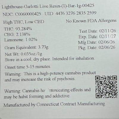 Lighthouse Garlotti Live Resin Disposable 93.28 % (I) 1g - 00425