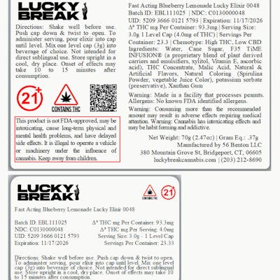 Lucky Break Cannabis Fast Acting Blueberry Lemonade Lucky Elixir 93.3 mg (H) - 00048