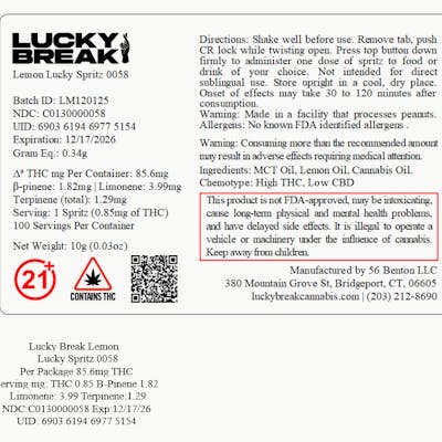 Lucky Break Cannabis Lemon Lucky Spritz 85.6 mg (H) - 00058