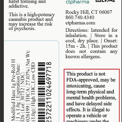 1g Hybrid Pre Roll THCA 27.03% // THC 24.30% Flower Equivalent: 1.0g Expiration Date: 8/11/2026