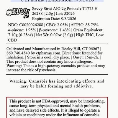 Savvy Strut AIO Pinnacle 88.75% (H) 2g Disposable - 26288