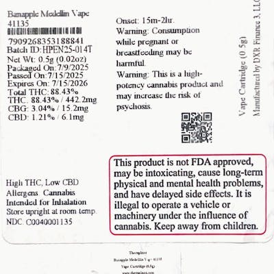 Theraplant Banapple Medellin Vape 88.43% (H) .5g - 01135