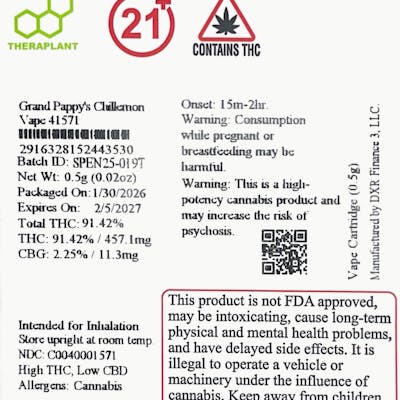 Theraplant Grand Pappy's Chillemon Vape 91.41 % (S) .5g - 01571