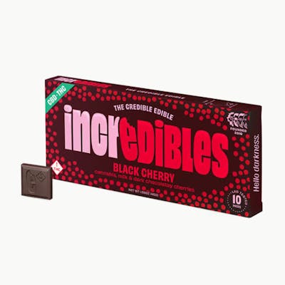 ~110mg CBD / ~110mg THC 10pk Hello darkness. Who needs fondue when you have this decadent treat? Tart cherries and milky, dark chocolatey goodness. Made with 100% pure cannabis oil in a perfectly blended mixture to ensure accurate dosing and consistency. Perfect for laidback Sundays and listening to your favorite records. Featuring a precision-dosed confection collection with yummy flavors, delicious effects and FDA-approved ingredients, you can trust incredibles to be the credible edible. Potential effects: Promotes general relaxation, promotes emotional well-being, relieving stress