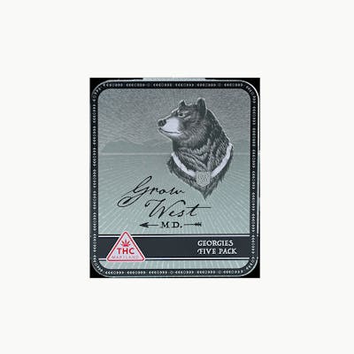 Grape Cake Pre-Roll Pack - 2.5g (0.5g x 5) Our signature Georgies pre-rolls are expertly crafted with strain-specific whole buds, never shake and trim, to preserve moisture. The cylindrical design offers radial compaction to create an even burn that pulls smooth like fresh mountain air. Each container holds five half-gram (.5g) pre-rolls. Cannabis effects and usage are reported from users' experiences. Your experience with cannabis will be unique as you interact with individual strains. We suggest starting slow and keeping track of the effects in a journal. Remember, life's a journey, and we're here to help you enjoy the ride.