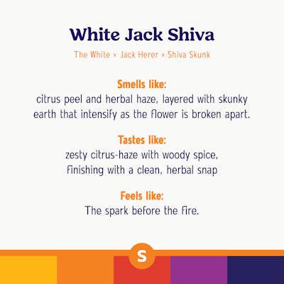 White Jack Shiva – Sativa Lineage: The White x Jack Herer x Shiva Skunk White Jack Shiva combines citrus brightness with herbal spice and earthy undertones. Its Sativa effects are clear and energizing, bringing a motivating, upbeat high. Everyday Fit For… - Rolling one before heading out to a local art festival - Passing citrusy smoke during a patio brunch with friends - Lighting up before tackling weekend projects with music on Roll One 14g Whole Flower Roll One 14g Whole Flower delivers trusted strains in a bulk size built for extended enjoyment. With a full half ounce of single-strain flower, it’s ideal for rolling, packing, or sharing — always fresh, always reliable, always ready for more. Product Highlights - 14 grams of single-strain flower - Smooth, flavorful, and easy to enjoy your way - Bulk size for extended sessions and everyday value