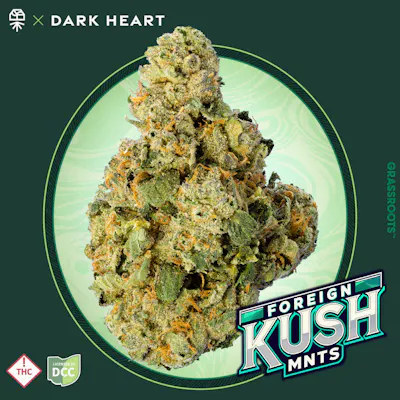 14.15 gram Flower Smalls Strain: Foreign Kush Mints Dominance: Indica Strain Description: Balanced and robust, Foreign Kush Mints is an indica with staying power and depth. Grassroots’ new strain collection is brought to you by Dark Heart, the legendary California breeders. Through pioneering research and development in advanced genetics, this collection of strains offers truly unique and exceptional flower experiences. Using extensive pheno hunting, the Dark Heart Collection offers truly novel flower. This comes from an advanced but classical breeding process of identifying and naturally amplifying desirable strain traits and unique terpene and cannabinoid combinations. After these strains were rigorously tested by discerning palates across the country, the result is a collection of six new cultivars of potent, delicious, and show-worthy buds. This collection is powered by Dark Heart, a pioneering cannabis brand that got its start in Oakland, California back in 2007. Known for selling high-quality clones to medical patients during the early days of California’s dispensary scene, they’ve since evolved into one of the most respected names in cannabis genetics. With advanced breeding facilities in Half Moon Bay and a dedicated agricultural R&D lab in Davis, Dark Heart brings decades of experience in cultivation, research, and strain development. This collection features the very best of these next-generation strains. Day(s) Supply: 5