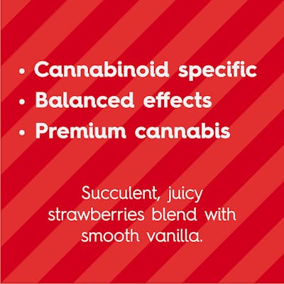 Strawberry Vanilla Ratio Gummies - 100mg Nice & Chill – Choose the chill side with delectable strawberry vanilla flavor and totally laid-back effects. These craveable gummies are made with premium cannabis. Each package comes with 10 gummies, with each edible infused with 9.5mg CBD and 0.5mg THC for a total of 100mg per pack. What's Inside: Ratio Gels let you find your perfect balance with cannabinoids in ratios specially formulated for uniquely enhanced effects. Made For Moments Like... * Fine-tuning your flow, your way * Balanced days and easy nights * A mood that makes room to choose your adventure Highlights Bold, delicious flavor Infused with premium cannabis No sugar added Vegan & gluten-free Balanced cannabinoid experience 10 gummies per pack / 9.5mg CBD each / 0.5mg THC each