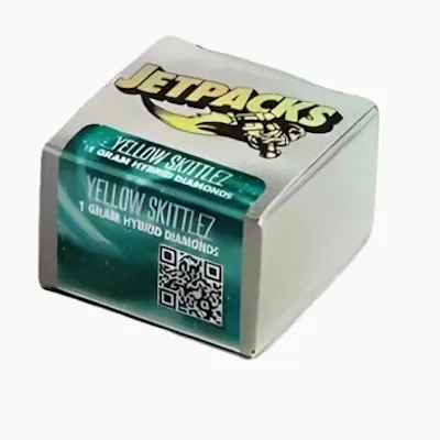 Jetpacks Yellow Skittlez Diamonds is a high-potency 1g Sativa concentrate, featuring crystalline "diamonds" of pure THCA submerged in a terpene-rich "terp sauce" for an elite, high-definition flavor experience. This premium extraction delivers a mouth-watering and electric aromatic profile of tart lemon-lime candy, tropical pineapple, and a sharp floral gas finish. It provides an instant, high-voltage cerebral rush: a sparkling surge of euphoric energy and intense mental focus—making it the gold standard for high-tolerance users seeking a powerful "daytime-spark" for creative breakthroughs or social marathons.