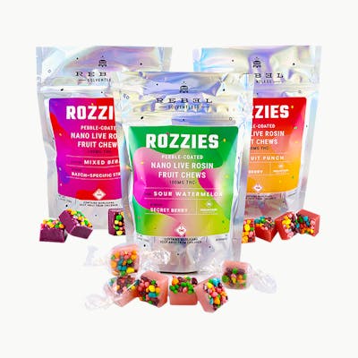 We set out to revolutionize fruit chews so they were delicious, effective, and not full of crappy crap. Rozzies are one sexy batch, what with their live rosin, natural ingredients and those crunchy tasty bits. No one else even comes close to their stardom.