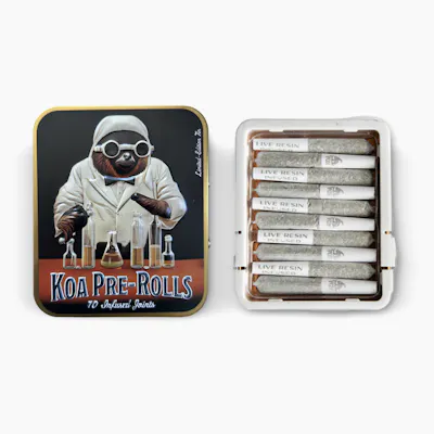 Meet Koa, the perfect cannabis pre-roll for those who want top-tier quality with maximum convenience. Each Koa pre-roll is infused and tests at 35%+ THC, made exclusively with premium indoor flower and live resin never distillate or botanical terpenes delivering clean flavor and powerful sativa effects that uplift, energize, and inspire.The 10-Pack comes in a sleek, pocket-friendly limited-edition collectible tin loaded with ten expertly crafted pre-rolls, making it the ultimate choice for those who want premium quality and serious value and yes, dont throw the tin away.Beyond the smoke, Koa supports sloth conservation, proudly adopting and protecting sloths across North and Central America, so every session gives back to something bigger.