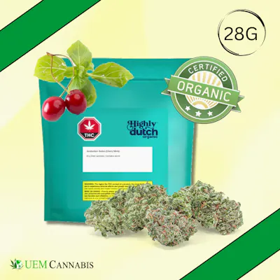 Organic Cherry Mints is a high-THC, sativa-dominant hybrid with genetics originating from Seed Junky. It is a sticky, dense, floral bud that brings with it a smooth berry flavour and aroma, with a hit of menthol undertone. Organically grown in living soil, Organic Cherry Mints grows tall and bushy and is supplemented with natural sources of carbohydrates like molasses and maple syrup that bring its sweet scent to life. Top terpenes include Alpha-Pinene, Beta-Myrcene, and Caryophyllene.