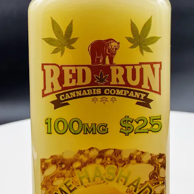 Introducing the Red Run Lime Hashade, a zesty and invigorating cannabis-infused limeade, expertly combined with a potent THC formula. Features: THC Content: 100mg THC in total, ensuring a consistent experience with each 8 fl oz. bottle. Serving Information: Divided into 10 servings, each containing 0.8 fl oz. (23g) with a precise 10mg of THC. Taste Profile: Tart lime flavor blended with the citrus of lemonade, creating a tangy, taste of summer experience. Benefits: Uplifting Experience: Designed to lift your spirits and provide a joyful sense of well-being. Refreshing Taste: A perfect balance of sweetness and tartness to refresh the palate. Shareability: Lime Hashade is great as a stand-alone treat or as a mixer for social gatherings, adding a festive twist to any occasion. With Red Run's Lime Hashade, you’re getting more than just a beverage; you’re getting a promise of quality, flavor, and an uplifting cannabis journey. Taste the vibrancy, enjoy responsibly.