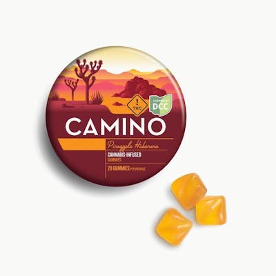 Sativa Everyone needs their own cheer squad now and then! Whether you’re dragging through the day craving some inspiration, or just need a little lift-me-up, Pineapple Habanero "Uplifting" Camino gummies are your go-to for an enlivening boost. Packed with the sweet, bright flavors of pineapple with a zesty habanero kick, each gummy boasts 5MG of THC and sativa-like terpenes to help elevate every experience. THC complements those feel good vibes, giving you that cheerful lift you’re looking for. So what are you waiting for? Get back in the game with Pineapple Habanero Camino gummies and let the good vibes roll.