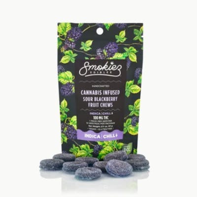 Indica Enhanced with real cannabis terpenes! Smokiez Sour Blackberry Indica Fruit Chews are NOT YOUR AVERAGE FRUIT CHEWS™ ;) These fruit chews taste like fresh blackberries, but with a zing! They have a tangy taste that is reminiscent of ripe berries. These delicious fruit chews are a tasty and discreet way for you to medicate! They are also Vegan, Gluten Free, Dairy-Free, and contain NO High Fructose Corn Syrup.