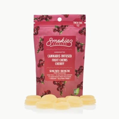 Hybrid Smokiez™ Cherry THCV:THC:CBD 2:1 Fruit Chews are NOT YOUR AVERAGE FRUIT CHEWS™ ;) These delicious fruit chews are a tasty and satisfying way for you to medicate! They are also Vegan, Gluten Free, Dairy-Free, and contain NO High Fructose Corn Syrup.