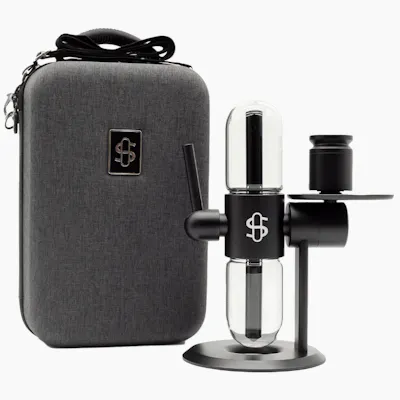 Introducing the newest sensation from Stündenglass, the Kompact Gravity Infuser. The Kompact features the same patented 360° gravity system, dynamic design, and immersive experience as the original, now available in a more refined, portable size that includes a custom-fit travel case. Coming in at just under a foot tall, the Kompact is exactly what you need to enjoy the benefits of Stündenglass in an easy to handle package. The smaller globes hold about two thirds of the volume, or 2 cups, compared to the full size, which creates cooler and faster pulls. The travel case is carefully crafted with high grade fabric and form-fitted to cradle the Kompact Stündenglass, which arrives full assembled. A beautiful metal inlayed logo plate adorns the front with an easy to use zipper, carrying handle and strap for over the shoulder use. Inside, there is space for accessories including a handy pocket to store anything extra you want to bring along with you. Designed for functional versatility, the Kompact Gravity Infuser is a complete set that includes an aluminum bowl kit and a glass liner but can also connect to any smoking or vaporization device with a 14mm male joint. Also included is a 3-foot silicone hose that can be connected to the 45° adjustable mouthpiece for direct draws or a steady stream of smoke for contactless consumption. The Kompact is a sophisticated and elegantly designed 360° rotating glass device that generates kinetic motion activation via cascading water displacement, opposing airflow technology, and the natural force of gravity. It is constructed using the highest quality materials, including borosilicate glass globes and aircraft-grade anodized aluminum. Compatible with: Mixology, Culinary, Hookah, Aromatherapy. Built-in percolation system delivers water-filtered, cooled smoke. Easy maintenance and simple to clean. Contactless consumption. Luxury travel case included.