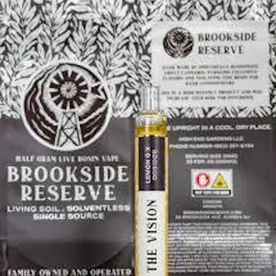 Brookside Reserve Living Soil Single Source Solventless Live Rosin Vision Disposable Vape