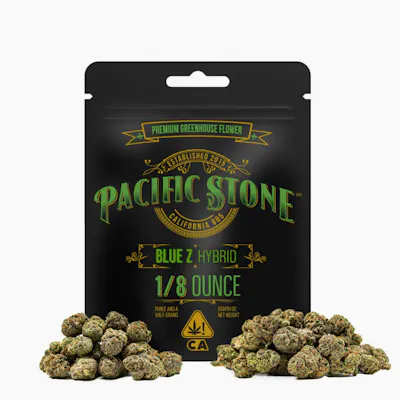 Blue Z is a vibrant and flavorful strain that stands out for its candy-like sweetness layered with notes of ripe berries and subtle citrus zest. Its dense, frosty buds carry a sticky texture that speaks to its potency, while the aroma blends sugary fruit with a touch of gas for a mouthwatering first impression. The flavor profile bursts with tangy grape and blueberry on the inhale, followed by a smooth, creamy exhale that dances on your palate. Expect a euphoric rush that uplifts the mind and sparks creativity, soon settling into a mellow body relaxation that eases tension without locking you down. Perfect for social sessions or winding down with a clear head, Blue Z delivers a balanced experience that is both fun and flavorful, making it a strain worth coming back to again and again. Experience the best of California with our Premium Greenhouse Flower, available in four convenient sizes: 1g,1/8th, 1/4th, ½ ounce, and 1 ounce. Grown sustainably in our clean coastal greenhouses, each plant thrives in a controlled environment, ensuring consistent quality and a smooth smoking experience every time. Our Pac Stone team takes pride in delivering farm-direct cannabis that’s not only affordable but also grown with care for the environment and your enjoyment.