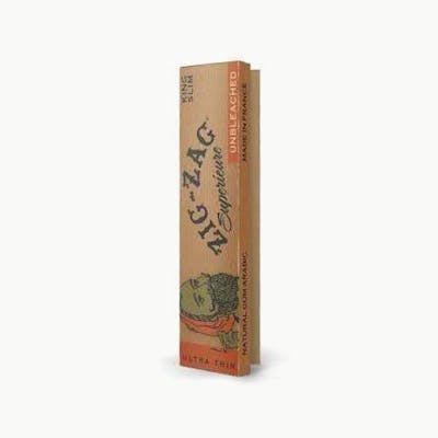 Zig-Zag Unbleached Papers are ultra thin crafted using a blend of natural fibers without the addition of any ingredients or processing. Recycled cardstock booklet with vegetable ink printing. All Zig-Zag papers have a thin glue line to provide a perfect seal – every time. Derived from the sap of the African acacia tree, the natural properties of 100% raw natural gum Arabic glue line provide a consistent seal without impacting the taste of your smoke. Substrate: Made from Unbleached Natural Flax Plant Fibers Paper Size: King Slim (108x44mm) Thickness: Ultra Thin Capacity: ~1g Pack Size: 32 sheets/booklet
