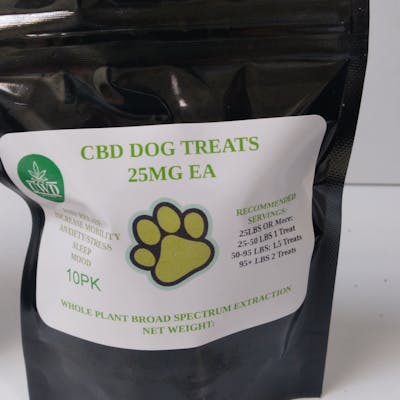 These dog treats are infused with 25mg CBD each. Package of 10.