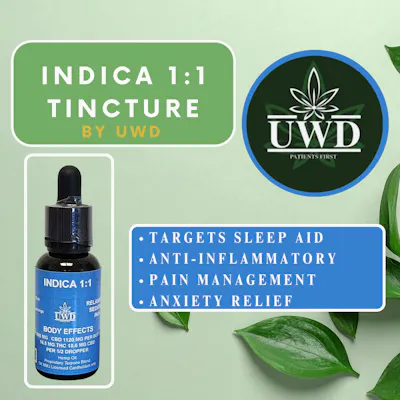 UWD 1:1 Indica Tincture 995mg THC/1120mg CBD 30ml