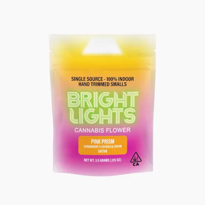 BRIGHT LIGHTS presents Pink Prism, a vibrant sativa flower that brings energy and clarity to your day. This 3.5g jar delivers an uplifting experience perfect for creative pursuits and social moments. Pink Prism's bright, euphoric effects inspire focus and happiness, making it ideal for daytime use when you need mental stimulation without feeling weighed down. The flower showcases a complex flavor profile with sweet berry and tropical fruit notes dancing over an earthy, herbal base, while hints of citrus add a refreshing finish. Each nug is carefully cultivated and hand-trimmed to preserve trichome integrity and maximize potency. Whether you're seeking creative inspiration, social energy, or simply a mood boost, Pink Prism delivers a premium sativa experience that keeps you motivated and engaged throughout your activities.