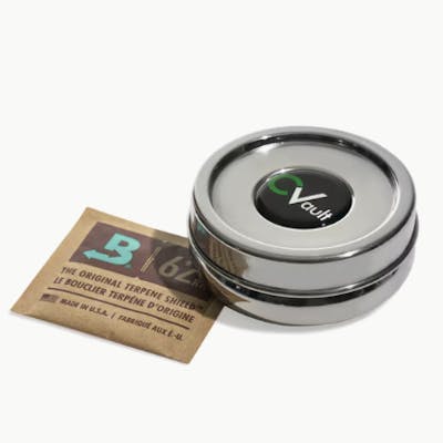 Uses: This is the perfect on-the-go CVault for personal cannabis storage. Supports: 1/4 oz or 7 grams Includes: One (1) Size 8 Boveda Materials: Stainless Steel Item Dimensions: 3.3 in/8.3 cm Dia, 1.18 in/3 cm D